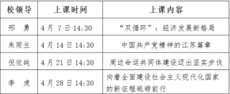 为深入贯彻中共中央宣传部 教育部印发的《新时代学校思想政治理论课改革创新实施方案》文件精神,落实校领导进思政课堂,本学期校领导将继续走进2017级高职《形势与政策》课堂,具体上课安排如下: