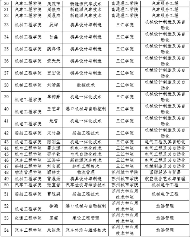 在2023年江苏省五年一贯制专转本考试中,我校54名同学被南京工业职业技术大学、金陵科技学院、南京晓庄学院、三江学院、苏州大学应用技术学院、苏州城市学院、南通理工学院、淮阴工学院、南京传媒学院、南京师范大学中北学院等本科院校录取。