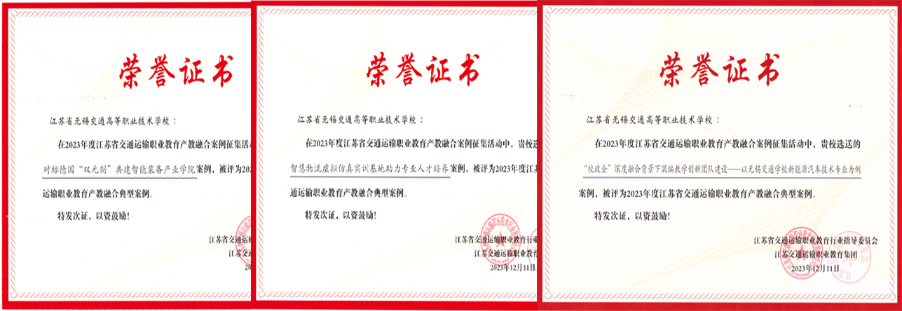 根据江苏省交通运输行指委2023年度工作安排,在全省广泛遴选课程思政案例、校企合作典型案例和开展示范性教师企业实践流动站认定工作。12月16日,江苏省交通运输职业教育行业指导委员会第四次全体委员大会暨江苏交通运输职业教育集团2023年年会在镇江召开,会上对2023年江苏省交通运输职业教育课程思政优秀教学案例、产教融合典型案例、示范性教师企业实践流动站进行了表彰。学校报送的《“驶”向绿水青山-探索纯电动汽车的行驶奥秘》等2项案例获评课程思政优秀教学案例评选三等奖、《智慧物流虚拟仿真实训基地助力专业人才培养》等3项案例获评产教融合典型案例、“交通工程智慧检测教师企业实践流动站”获评示范性教师企业实践流动站。
