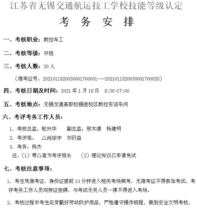 2021.1.18数控车工考务安排