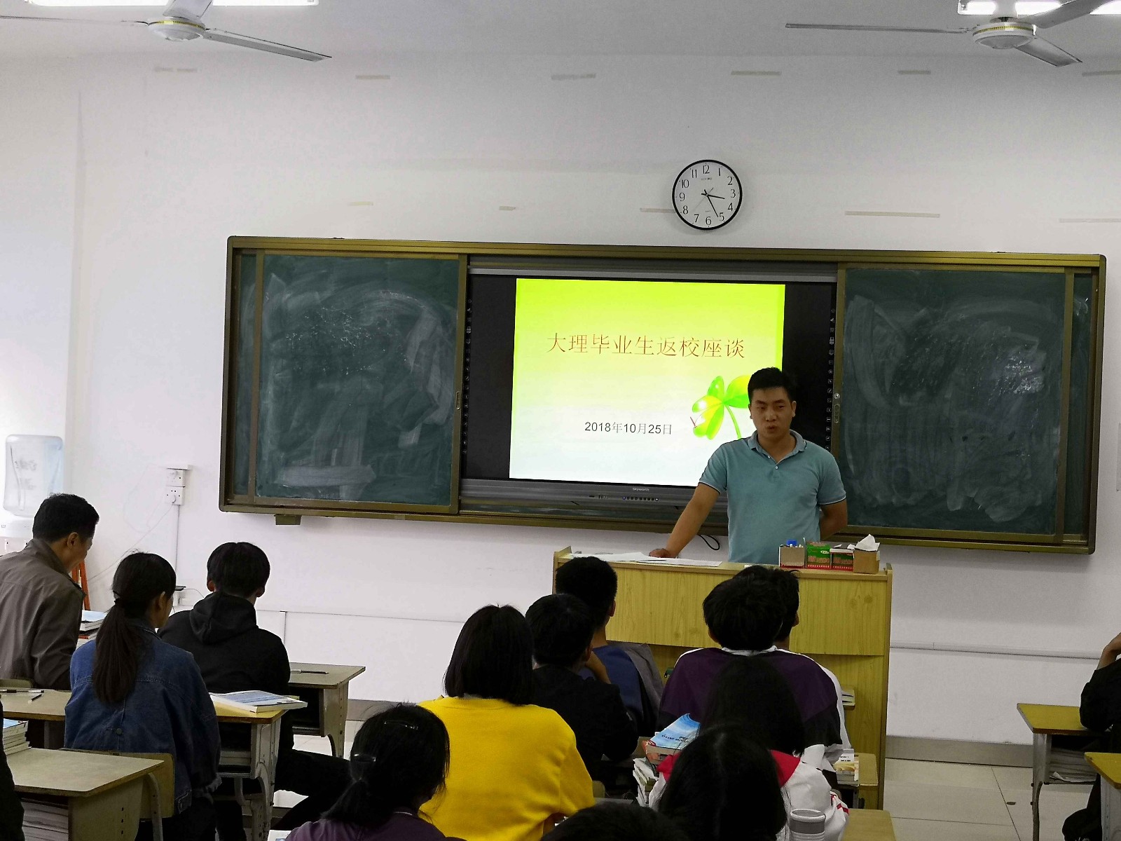 会议伊始,杨建明书记简单介绍了受邀请的几名毕业生的情况,鼓励在校大理学生要像3位学长、学姐学习。