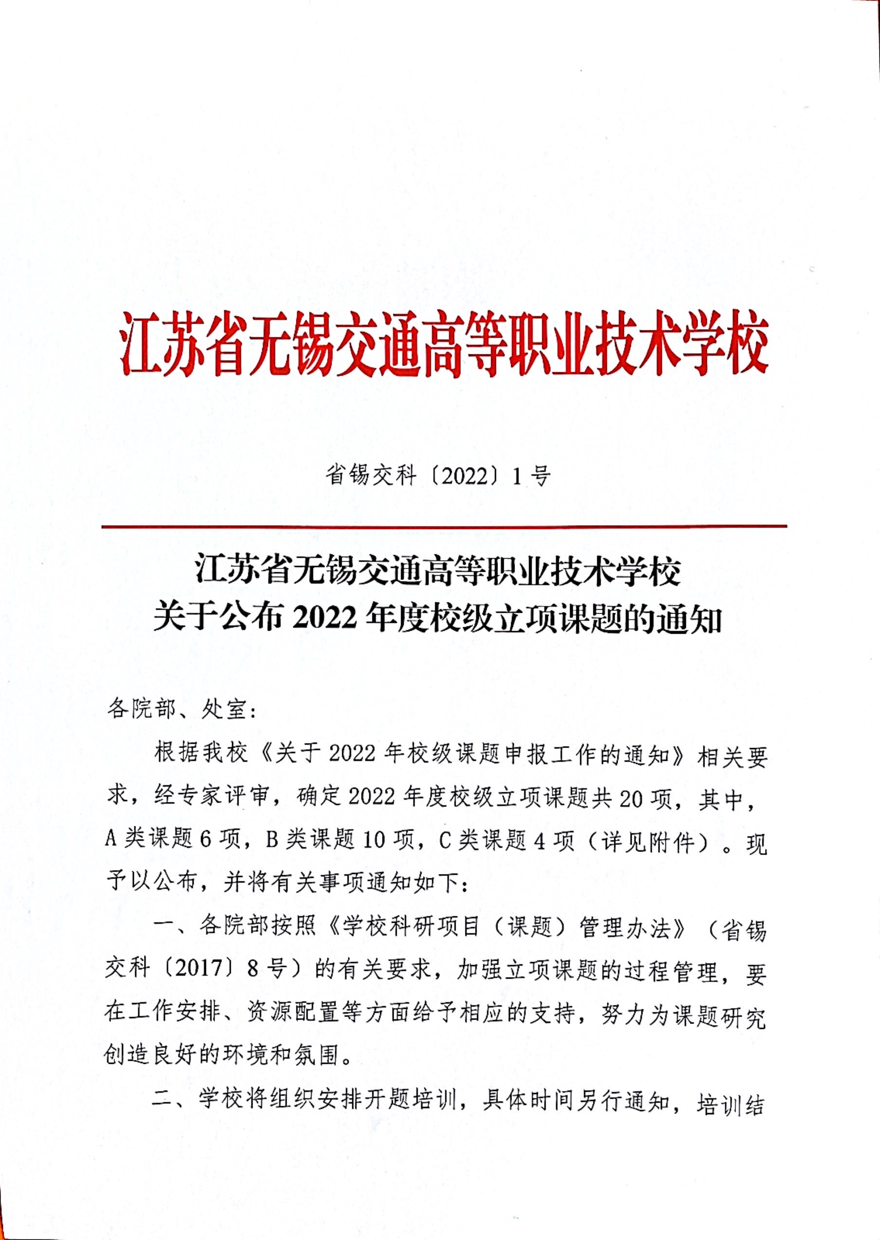 关于公布2022年度校级立项课题的通知