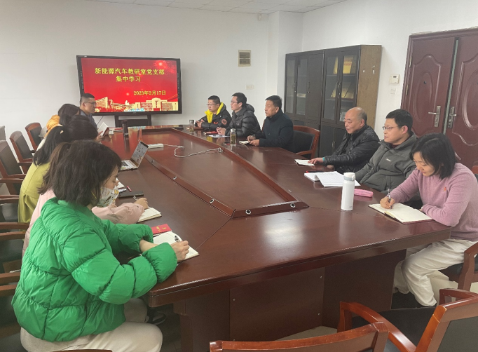 2023年2月17日,汽车工程学院新能源汽车教研室全体教师在学院总支活动室开展了集中学习活动,活动由新能源汽车教研室党支部书记张俊主持。