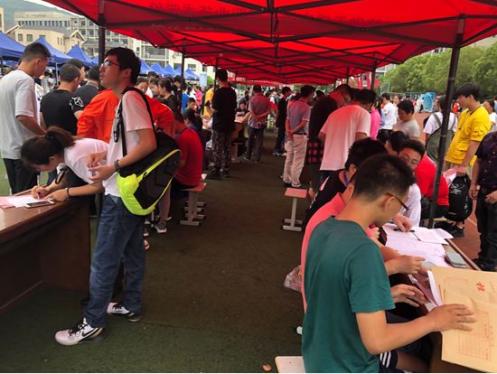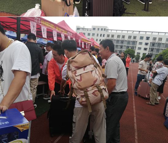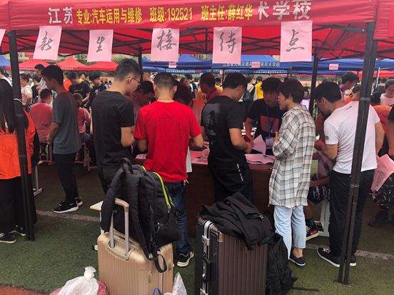 各个班级积极行动,在操场设立新生报到处,班主任现场接待报道学生及家长,为新生发放开学的相关材料,以及办理入住手续等。他们顶着烈日,默默的忙碌着,为新生介绍自己的学院,自己的专业。提供人性化服务,为家长提供了一站式服务,可以让忙碌的家长缩短报道时间。