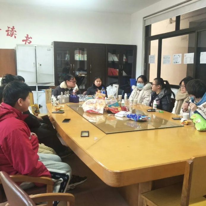 午会在生动有趣的“成语接龙、谁是卧底、数字炸弹、你来比划我来猜”等游戏中开始,同学们积极参与,欢声笑语充满整个活动室。社长还精心为大家准备了许多可口的美食,与同学们共同回忆2020 年社团开展的读书沙龙、阅读书籍目录、助残“童在蓝天下”等活动,笑容洋溢在每个人人的脸上。