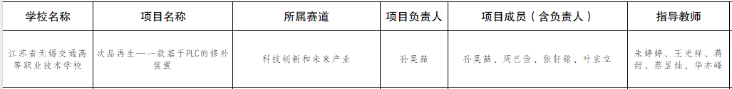根据《关于第十四届“挑战杯”中国大学生创业计划竞赛江苏省选拔赛项目申报的通知》相关要求,经学校选拔,现拟推荐机电工程学院《次品再生—一款基于PLC的修补装置》作为省赛参赛作品。现将相关作品信息进行公示,公示期内,任何单位或个人对公示结果持有异议,可向校团委进行实名反馈。