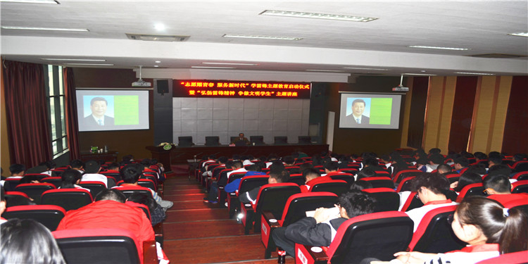 为学习贯彻习近平新时代中国特色社会主义思想,认真落实十九大“推进志愿服务制度化”的要求,大力弘扬雷锋精神,掀起我校学雷锋志愿服务新高潮3月6日下午,学生工作处、团委在学术报告厅举办“志愿耀青春 服务新时代”主题教育启动仪式暨“弘扬雷锋精神,争做文明学生”主题讲座。学校关工委副主任、原正校级调研员王金毫同志,副校长邢勇同志,学生工作处处长兼团委书记吴雪琴老师、团委副书记孙霞老师、各学院团总支书记以及近200名志愿者代表参加了此次活动。