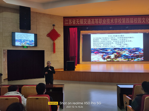 为教育引导团学干部铭记历史,振奋民族精神,加强青年学生的爱国主义教育,12月14日下午,学校邀请了无锡市关工委报告团蒋川海老师,在学校礼堂面向团学干部开展了“铭记历史 开创未来”的主题讲座,全体在校班级班团干部、学生会干部和各社团负责人共200余人参加了此次活动。