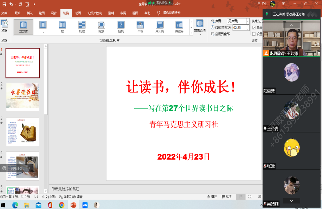 2022年4月23日下午,青年马克思主义研习社指导老师王龙生组织社团成员,线上开展“让读书,伴你成长”的主题社团活动。