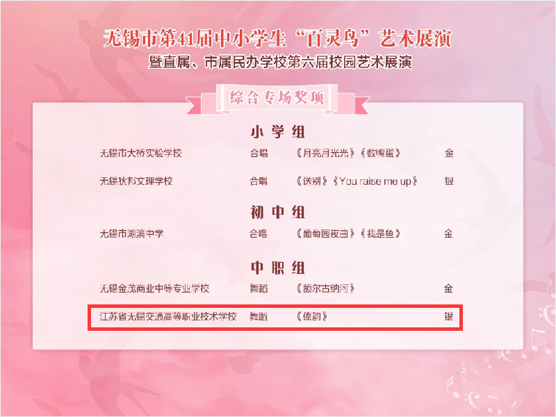 喜报!我校在无锡市第41届中小学生“百灵鸟” 艺术展演中荣获佳绩