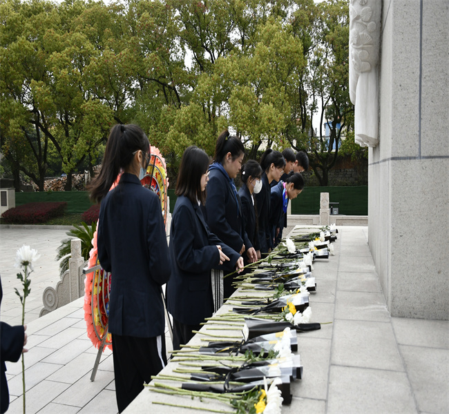魂魄托日月,肝胆映河山。师生们怀着崇敬的心情来到无锡市革命烈士陵园,走过百米甬道,在“为国牺牲人民英雄纪念塔”前的金山石广场列队肃立,向纪念塔敬献花圈,英烈致以最深切的缅怀和最崇高的敬意。随后,全体默哀,向千千万万为国捐躯的英雄儿女表示深切哀悼。庄严肃穆的仪式寄托着延绵不绝的哀思之情,也昭示着慨然前行的奋发之志。