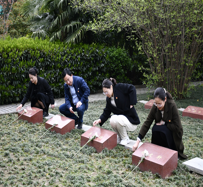 在纪念塔前,学生工作处党支部书记、校团委副书记孙霞同志带领党员和团员重温入党誓词、入团誓词,铮铮誓词在烈士陵园久久回荡。随即,大家绕纪念塔一周,缅怀先烈,向为国牺牲的人民英雄敬献鲜花。伏下身来,细心擦去碑体上的灰尘,每一处擦洗都表达着对烈士的缅怀和敬仰。