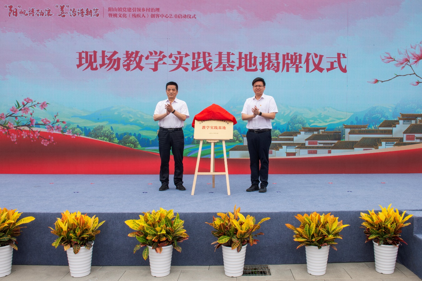 启动仪式上,我校学生工作处党支部与阳山镇阳山村总支开展党建共建,双方共建的双创实践基地“江苏省无锡交通高等职业技术学校现场教学实践基地”正式揭牌。依托党建共建和双创实践基地,由我校物流管理学院利用专业优势,助力阳山水蜜桃、阳山桃文创产品的网络销售和网上宣传,并不断深化与阳山镇合作,通过为农户开设电商直播培训班,为阳山水蜜桃提供直播营销等方式服务阳山镇乡村振兴。