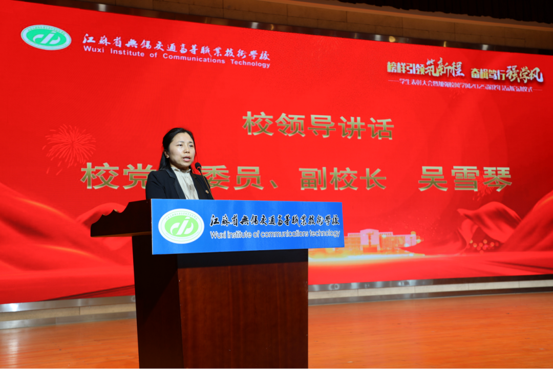 副校长吴雪琴宣布加强校风学风2025深化年活动正式启动。她指出全校师生要深刻认识深化校风学风建设的重要意义,上下齐心,共同营造出更加优良的育人环境。学校将深化目标引领、深化规范管理、深化活动创新,搭建展示平台,促进优良校风学风形成。她希望全体学生树立远大志向,积极参与志愿服务等活动,以主人翁姿态从小事做起,共同维护良好的校园氛围。