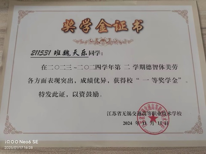 魏天乐课堂表现优异,通识与专业课程皆能全情投入,知识储备日益丰厚。在技能提升的漫漫长路上,魏天乐一步一个脚印。他从基础的汽车零部件识别与组装学起,在实训车间里,无数次重复着单调却关键的操作步骤,始终保持专注与执着。随着经验的积累,他逐渐进阶到复杂的新能源汽车控制系统检修。经过长期不懈努力,他成功获得了行业内权威认证机构颁发的初级新能源汽车维修技能证书。