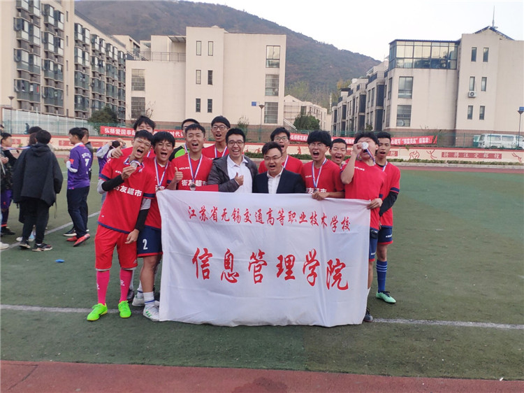 2019年11月14日下午,在我校钱荣校区的足球场上,机电工程学院足球3:2险胜信息管理学院足球队夺得2019锡交街友杯足球赛的冠军。